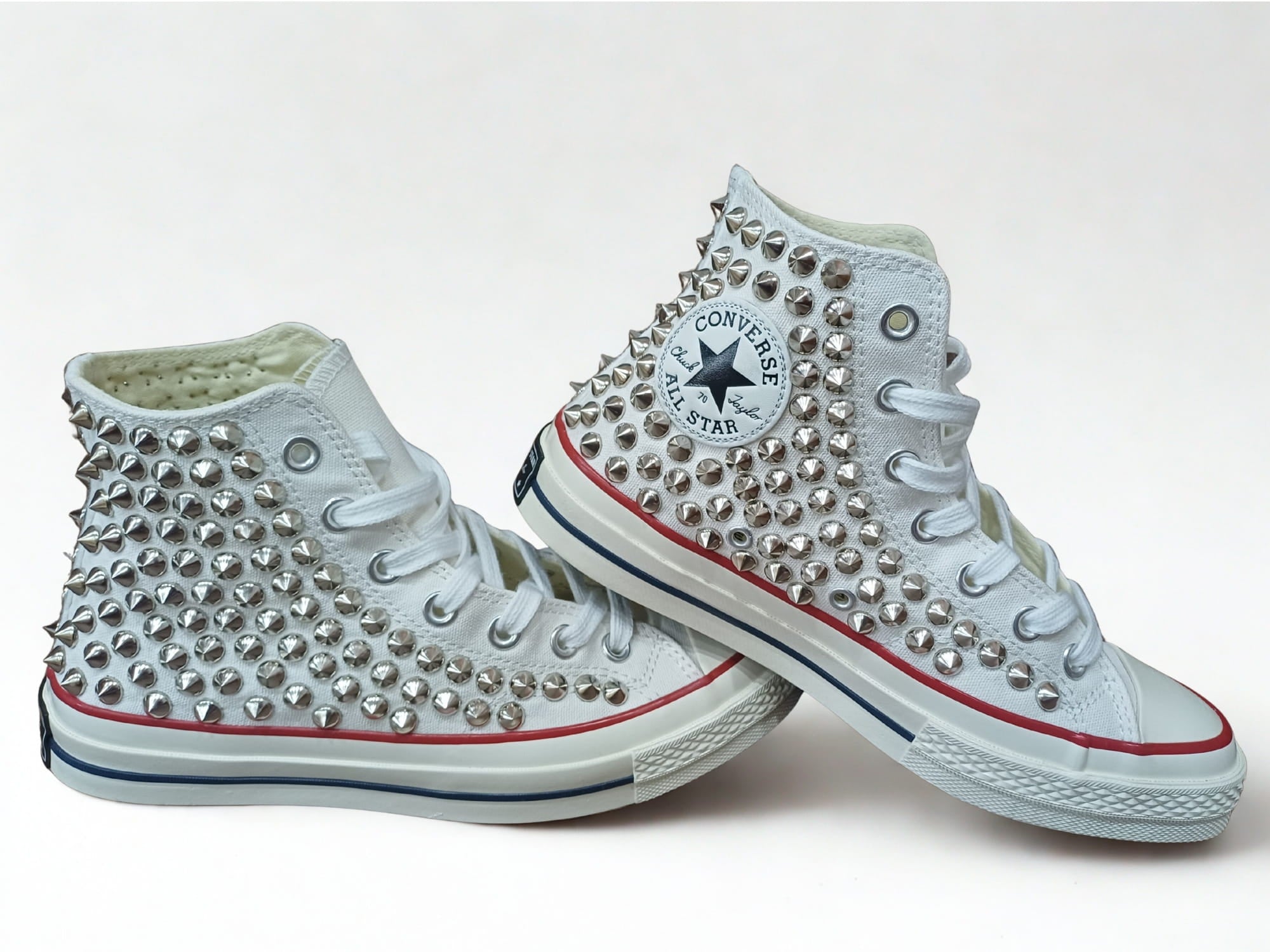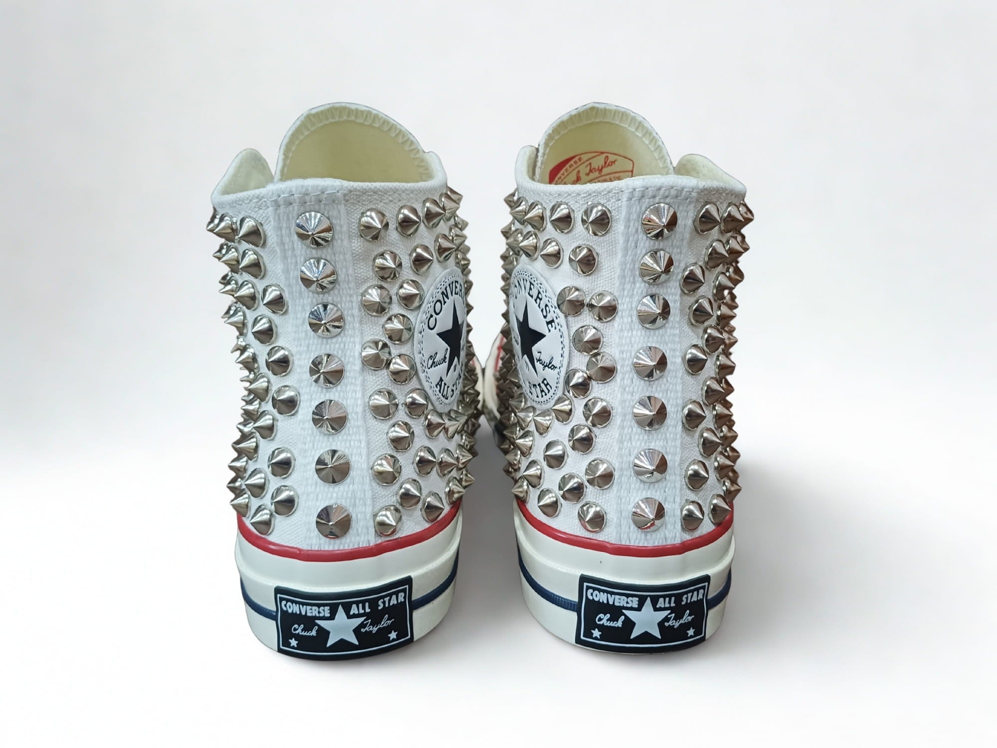 Our studded designs are created on genuine Converse shoes sourced through legitimate retail suppliers. The customization process is done independently and focuses only on external design elements, while the original materials, fit, and construction of the shoes remain unchanged
